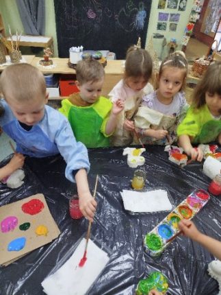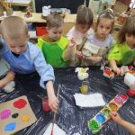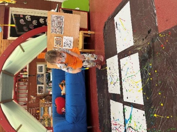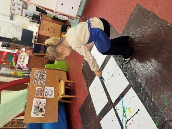 Vilenjaci su se upoznali s načinom slikanja Jackson Pollocka. Kroz igru djeca su istraživala tehniku kapanja i prskanja boje te su poput pravih malih umjetnika stvarali šarene slike. Ovom aktivnošću poticali smo dječju kreativnost i slobodno izražavanje.