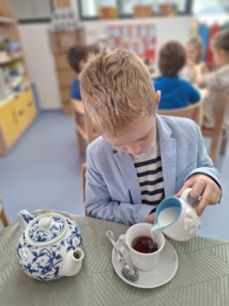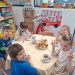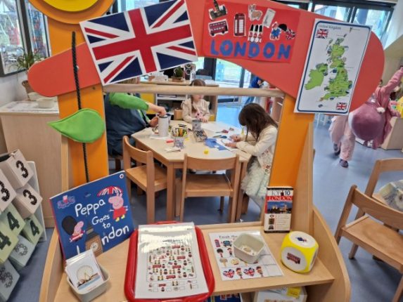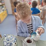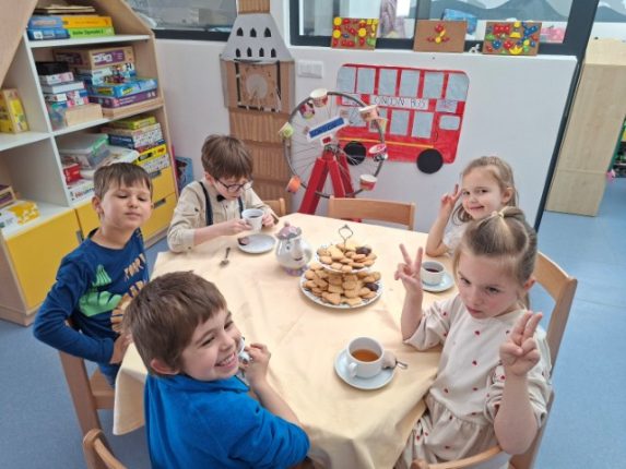 Skupina Daisies posljednjih par tjedana upoznaje zemlje u kojima se govori engleski jezik. Prva po redu je bila Velika Britanija i njezin glavni grad London. Djeca su saznala mnogo  o glavnim znamenitostima ovoga grada te izradila neke od njih. Uz pomoć slikovnih kartica djeca su usvojila pojmove vezane za englesku kulturu, naučila su igru s pjevanjem „ London Bridge is falling down“, čitala slikovnice na temu Londona te svakodnevno širila spoznaju o ovom gradu i njegovoj kulturi. Tea time je jedan od glavnih običaja pa smo i mi priredili pravu čajanku. Djeca su vježbala životno-praktične vještine pripremajući čaj te koristeći porculansko posuđe za posluživanje ovog napitka.