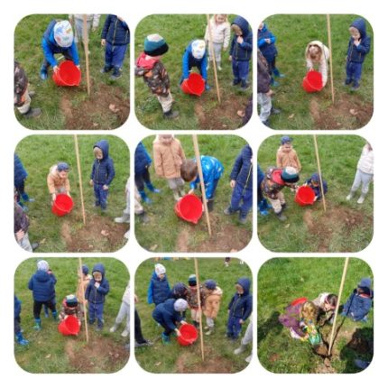 Djeca i odgojiteljice Montessori odgojne skupine Perlice zasadila su stabla i voćke u dvorištu našeg vrtića.  Posadili su stabla kestena i bukve, a od voćaka trešnju, smokvu i šipak. Djeca veselo iščekuju plodove.