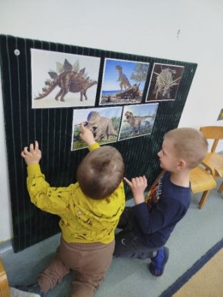 Gospođa Marina Sečkar Kovačić približila je djeci svoje zanimanje pričavši im o istraživanjima arheologa. Donijela je veliki ruksak pun zanimljivih predmeta koji su važni arheologu za njegov rad . I mi smo na jedan dan postali mali arheolozi pa smo iskopavali dinosaure i oslikavali ih akrilnim bojama.