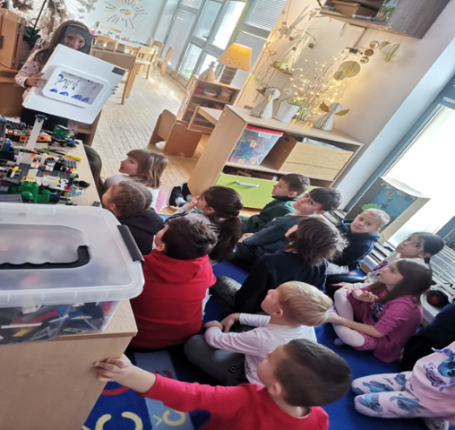 U odgojnoj skupini Lisice ugostili su stričeke Vjeku i Borka iz tvrtke Komunalac koji su djecu naučili o recikliranju i čuvanju prirode. Igrali su i društvenu igru s legićima (mala matematika).