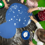U odgojnoj skupini Tintilinići djeca su vodenim bojama, oslikavanjem prstima oslikala motiv leptira. Također su povećalom promatrali kako izgleda maslačak i listovi maslačka.