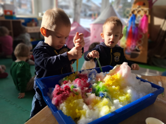 U odgojnoj skupini „Listići“ djeca su osim istraživanja snijega tijekom boravka na zraku koristila snijeg u istraživačkoj aktivnosti s bojama te isprobavajući otkrivala njihova svojstva (boja, temperatura…), poticao se spoznajni razvoj djece.