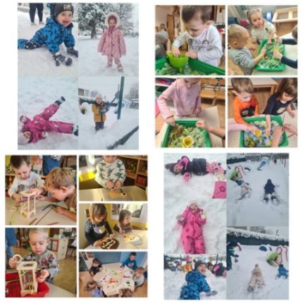 Vratili smo se u naš objekt nakon dva tjedna provedena u centralnom objektu vrtića. Djeca su se brzo priviknula na povratak te su se istome jako veselila! Pao je dugo očekivani snijeg, igra je prebačena uglavnom na boravak na zraku. Većinu vremena djeca su provela igrajući se u snijegu – grudanje, izrada snjegovića, istraživanje mogućnosti snijega i leda. Nakon igre razvijali su samostalnost skidajući skafandere i presvlačeći se. Pokušavali su što više toga napraviti sami. U igri na zatvorenom najviše smo razvijali finu motoriku. To smo činili kroz razne didaktičke igre i slagalice, modeliranjem plastelina te igrom pomponima.