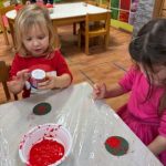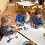 Odgojna skupina Bubamare istražuje likovna sredstva i materijale otiskivanjem tempere spužvicom. Razvijali su glazbeno pamćenje te tempo i ritam igrom s pjevanjem pod nazivom „Boc, boc iglicama“. U aktivnosti uparivanja podloge s autićima prema boji, razvijali su vizualnu percepciju te spoznajni razvoj.