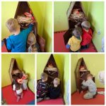 Isto tako, u sklopu oglednog sata, odgajateljice su izradile Ježev brlog sa taktilnim lutkama Ježa koji je probudio interes djece i potaknuo slobodnu, imitativnu igru djece.
