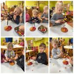 U odgojnoj skupini Leptirići provela se aktivnost dubljenja bundeve te su djeca istraživala unutrašnjost bundeve, promatrala njene koštice, istraživala opipom što osjete… Koštice su očistili i stavili sušiti, a cijelu aktivnost zaokružili su  čitanjem slikovnice „Juha od bundeve“.
