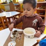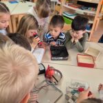 U odgojnoj skupini Ježići djeca za vrijeme kruga razgovarala o emocijama, imenovali su emocije te slagali puzzle od dva djela koji prikazuju izraze lica. Također, razvijali su taktilnu percepciju u igri rasipnim materijalom poput obojene riže, modelirali su slano tijesto i domaći plastelin.