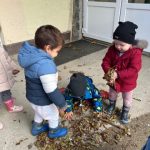Odgojna skupina Ptičice iskoristila je sunčano jesensko vrijeme za dulje boravke na zraku, gdje su djeca pokazala osobit interes za igru lišćem. Lišće su bacali u zrak, preskakali hrpe lišća te istraživali boje, oblike i površinu raznih listića.