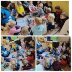Odgojna je skupina Ježići obilježila Uskrs umetaljkama od pedagoški neoblikovanog materijala (kokoš i perje, ovca i higijenski štapići) te su pročitali priču “Jaje koje nije znalo koju boju voli” nakon koje su ukrašavali jaja. Trganjem papirića te istraživačkom aktivnosti sa sodom bikarbonom i prehrambenim bojama obilježili su Dan planeta Zemlje.