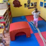 Poticanje razvoja fine motorike šake i prstiju u odgojnoj skupini Ježići ostvareno je trganjem i ljepljenjem papirića te rasipnim materijalom gdje su punili i praznili čašice. U sobi je dnevnog boravka oformljen poligon prepreka koji se sastojao od hodanja po suženoj površini i ASCO elemenata za poticanje prirodnog oblika kretanja u djece.