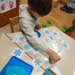 Odgojna skupina Bubamare uživala je u parku vrtića u igri snijegom gdje su međusobnom suradnjom napravili snjegovića te kreirali svoju igru. U sobi je dnevnog boravka provedena likovna aktivnost na temu pahuljica u kojoj je ponuđena crtačka tehnika tuš i pero.