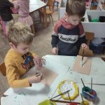 Povodom već proljetnih promjena u prirodi, odgojna je skupina Ježići provela likovnu aktivnosti tiska vilicom što je predstavljalo cvijeće. Također, razvijali su razne motoričke vještine putem poligona prepreka s ASCO elementima.