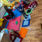 U navedenom su periodu u odgojnoj skupini Ježići djeca razvijala koordinaciju i ravnotežu putem metodičko organizacijskog oblika rada poligon prepreka (penjanjem i spuštanjem niz tobogan, provlačenjem kroz tunel i hodanjem po suženoj površini). Također, u aktivnostima početnog čitanja i pisanja odgojiteljice su obradile slikovnice “Miffy”, a djeca su usvajala vještine slušanja, praćenja priče putem ilustracija, razvijala pažnju i prostornu percepciju (lijevo – desno).