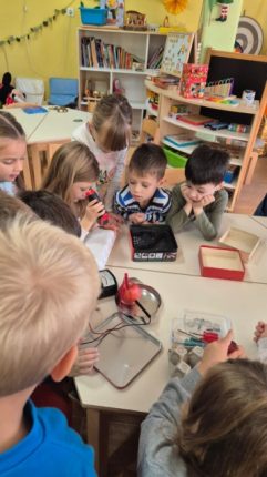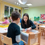 U odgojnoj su skupini Leptirići djeca izradila novčiće i karte za kino. Sve su pretvorili u imitativnu igru uz pomoć odgojiteljice koja im je ispričala priču putem ilustracija i paravana. Zatim su nacrtali omiljeni dio priče. Također, povećalom su proučavali rast trešnje i njen izgled, a kasnije to pretvorili u likovno djelo te su time razvijali vizualnu komunikaciju i finu motoriku.