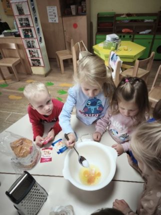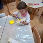 Odgojna je skupina Ježići obilježila Uskrs umetaljkama od pedagoški neoblikovanog materijala (kokoš i perje, ovca i higijenski štapići) te su pročitali priču “Jaje koje nije znalo koju boju voli” nakon koje su ukrašavali jaja. Trganjem papirića te istraživačkom aktivnosti sa sodom bikarbonom i prehrambenim bojama obilježili su Dan planeta Zemlje.