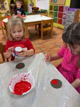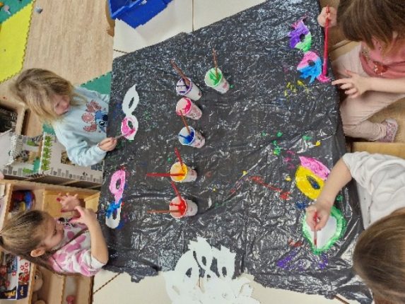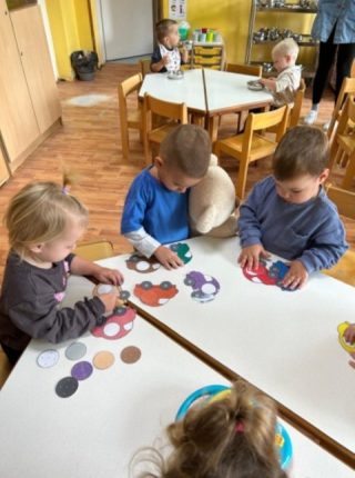 Odgojna skupina Bubamare istražuje likovna sredstva i materijale otiskivanjem tempere spužvicom. Razvijali su glazbeno pamćenje te tempo i ritam igrom s pjevanjem pod nazivom „Boc, boc iglicama“. U aktivnosti uparivanja podloge s autićima prema boji, razvijali su vizualnu percepciju te spoznajni razvoj.