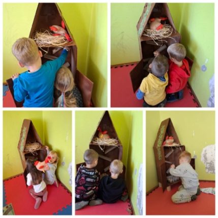U jasličkoj odgojnoj skupini Ježići ptice su bile glavni  motiv za razvoj aktivnosti. Djeci je u razini njihovih očiju postavljen slikovni prikaz životnog ciklusa ptica. Djeca su kreirala igru hranjenja ptica poticajima poput ptica od kartona i čupave žice koja je predstavljaja crviće, a obogaćivala su rječnik i razvijala govor brojalicom “Pliva patka preko Save”.