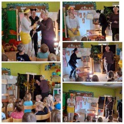 Odgojna skupina Pčelice je također obilježila dan jabuka slušanjem priče „Tri jabuke s bakina ormara“, razgovorom o jabukama te izradom jabučica od kolaž papira koristeći škarice i ljepilo. U prostoru stolno-teniskog kluba su odradili sat tjelesnog vježbanja gdje su proveli vježbe zagrijavanja, poligon prepreka i vježbe istezanja. Također su pogledali predstavu „Juha od bundeve“ nakon čega su likovnom aktivnošću, pomoću bojica, prikazali svoj osvrt na predstavu. Na vanjskom prostoru vrtića su uživali u jesenskom okruženju te koristili kišobrane kao rekvizite za igru.