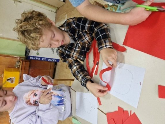 U odgojnoj skupini Ribice djeca su upoznata s ukrajinskom narodnom bajkom “Rukavica” koja je bila poticaj za izradu aplikacija, pripremu predstave, podjele uloga te izvođenje predstave pred prijateljima. Djeca su ovom aktivnosti ojačala pozitivnu sliku o sebi, usvajala vještine dogovora i poštivanja tuđih želja.