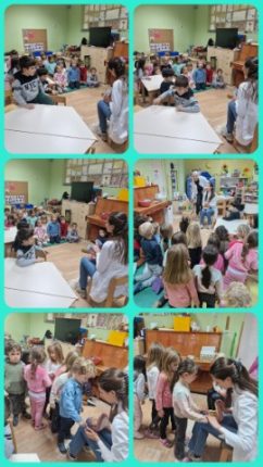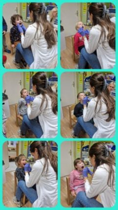 Odgojnu skupinu Pčelice su posjetile liječnice dentalne medicine. S djecom su prošle pravilno održavanje oralne higijene, edukaciju o važnosti redovitih odlazaka stomatologu, zdravu i nezdravu prehranu. Zatim je svako dijete pristupilo kratkom pregledu svojih zubića te su za nagradu dobili naljepnicu i pastu za zube. Kako bi se djeca što bolje pripremila za dolazak liječnica, danima prije su provodili aktivnosti poput izrada zubi od glinamola, prali plastificiranu sliku zubića, slušali pjesmice o zubima i još mnogo toga.