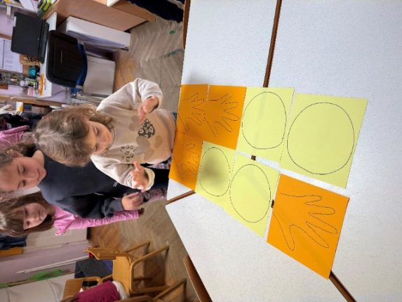 Odgojna je skupina Ježići razvijala okulomotornu koordinaciju te finu motoriku šake i prstiju trganjem i ljepljenjem kolaža. Izradili su svoj “sun catcher” u obliku leptira. Sun catcher osim što estetski oživljava prostor, privlači pozitivnu energiju sunca te ju reflektira u prostor.